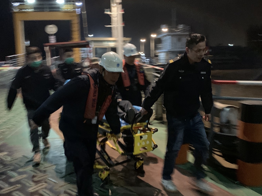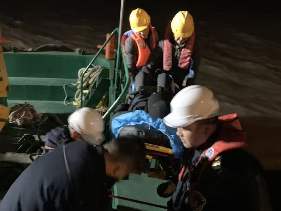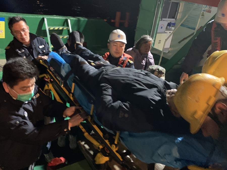 此时,冷空气席卷江面,寒风凛冽刺骨,温度一度达到零下4℃,转运过程中,执法人员克服夜间视线不良、风急浪高和寒冷天气等不利因素,科学评估辖区实时风浪情况。一方面,与患者及随行医生取得联系,详细跟踪了解病患状况,做好病人防风保暖工作。另一方面,紧急协调辖区船员党员志愿服务队应急船舶和客运码头工作人员,畅通转运绿色通道,选择最有利于病患安全登离船泊位,以最快速度完成靠离泊作业,各环节无缝衔接,高效配合,最大程度为病患争取宝贵就医时间。22时43分,在执法人员和辖区船员党员志愿服务队队员通力协作下,患者被顺利转移至横沙通道长兴侧救护车上,随后前往上海市区医院接受进一步治疗。